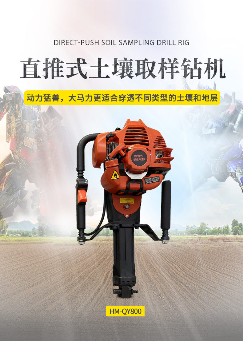 與傳統的手鉆比較,HM-QY800土壤取樣鉆機鉆取的深度更深、取樣的效率更高,并且取得的是原狀、基本無擾動和壓縮(視地形而定)的土壤樣品。在取樣深度超過半米、對土壤樣品的質量(原狀、無擾動、無壓縮)要求較高的項目中,采用該設備是不錯的選擇。