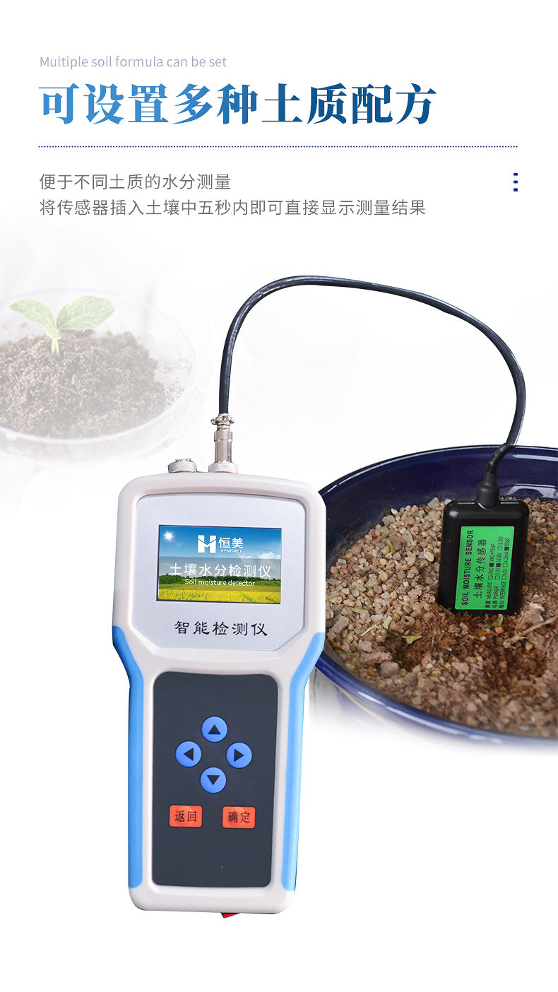 5、儀表可設置多種土質配方,便于不同土質的水分測量。