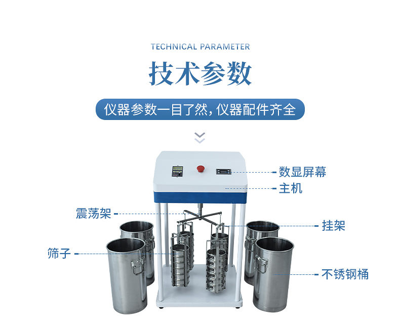 4、標準篩孔徑:5mm,3mm,2mm,1mm,0.5mm,0.25mm。(可選配其他規格孔徑)