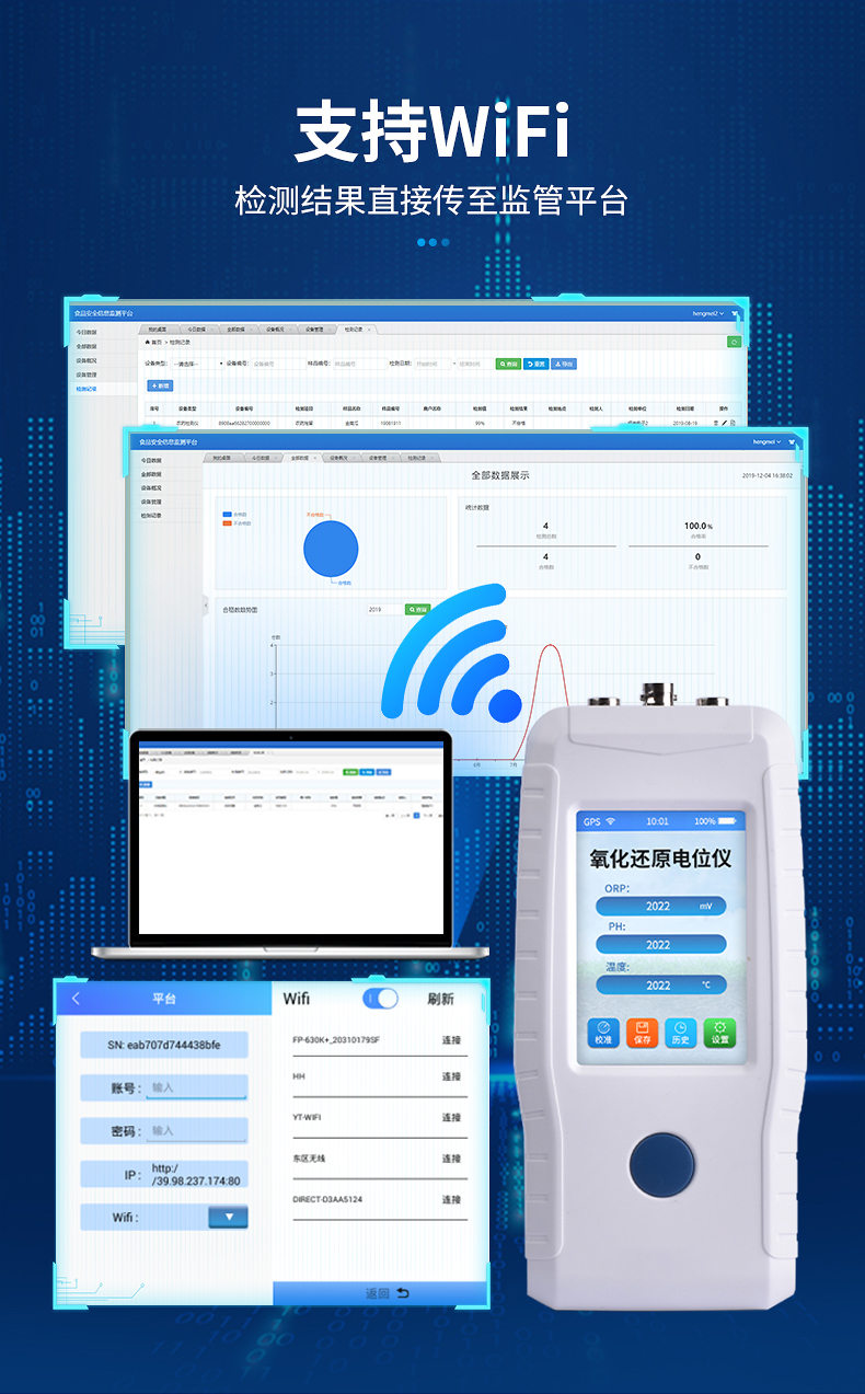 ●支持Wi-Fi,檢測結果直接傳至監管平臺