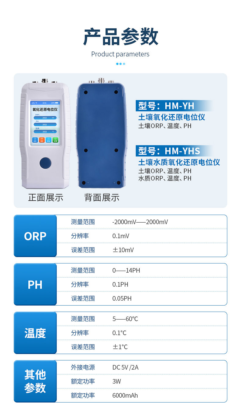 【產品簡介】檢測土壤ORP、溫度、PH;水質ORP、溫度、PH