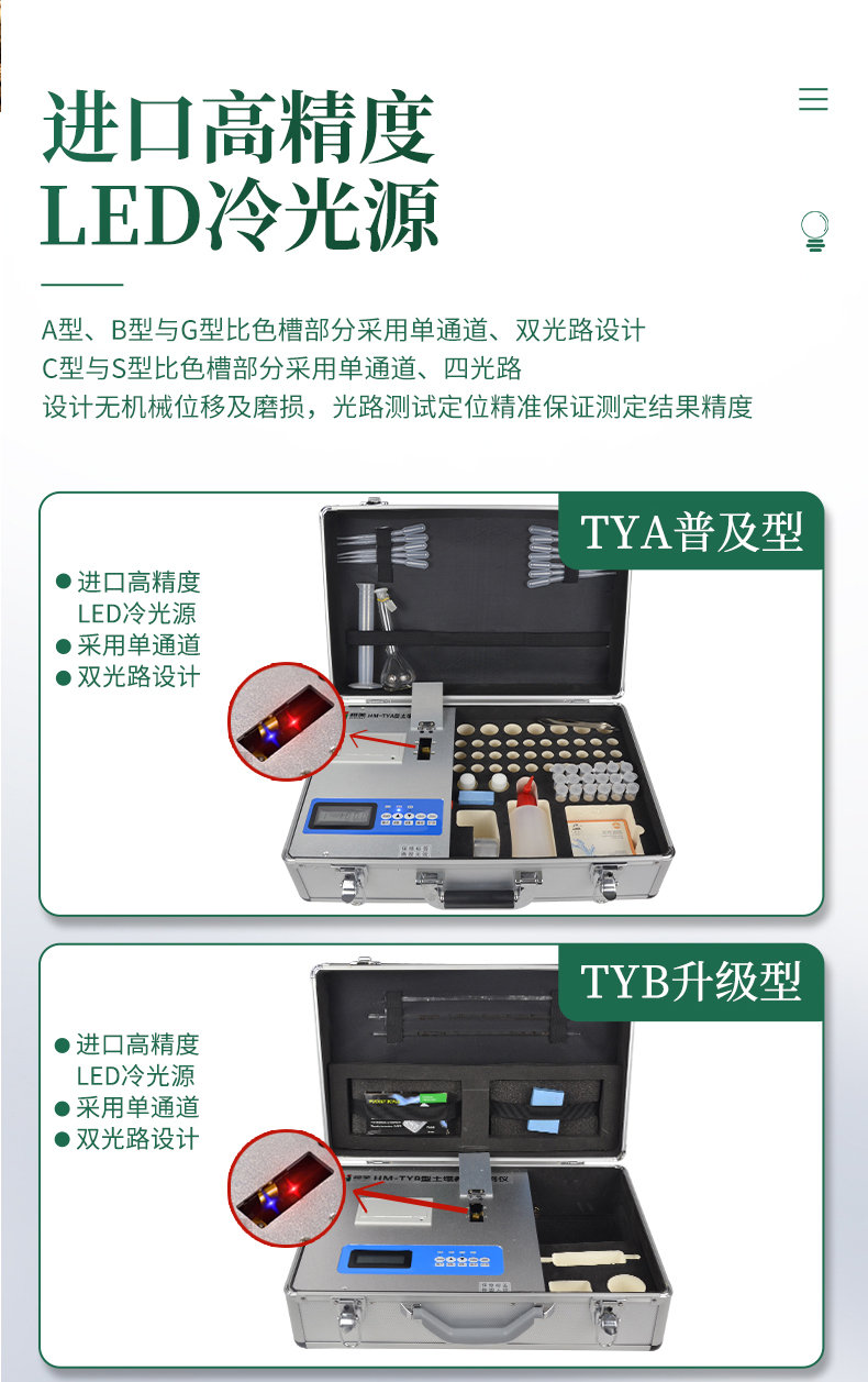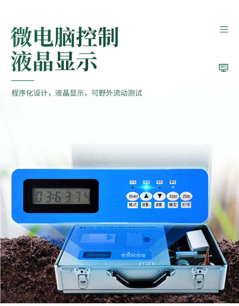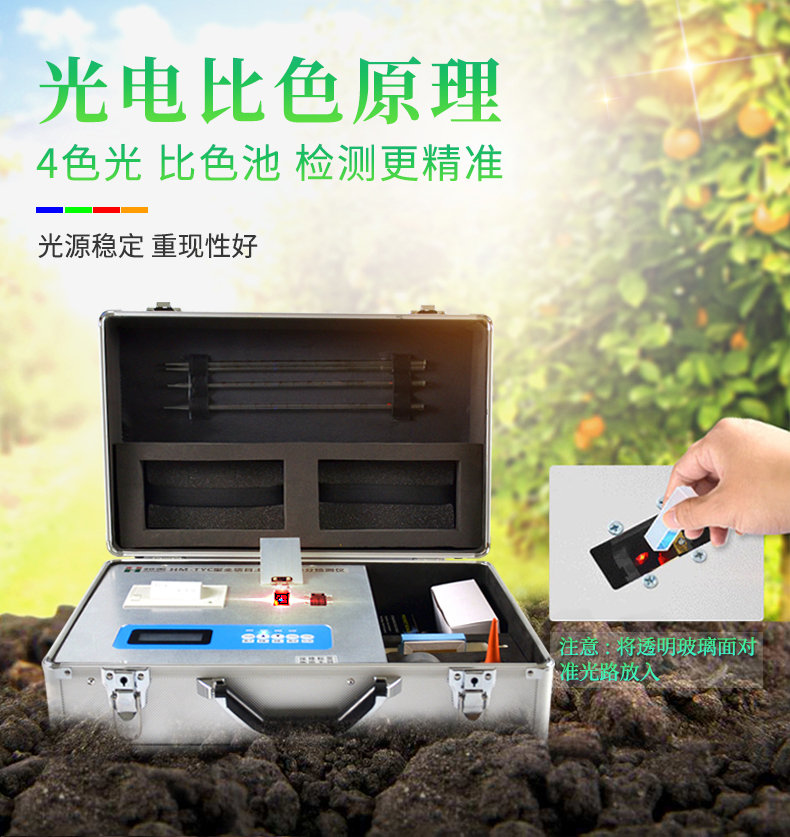 配套齊全:該儀器集藥、器、儀為一體,攜帶方便,相當于一個小型實驗室。適于農業服務部門或農資經銷商、肥料廠商測土施肥和鑒別肥料真假。